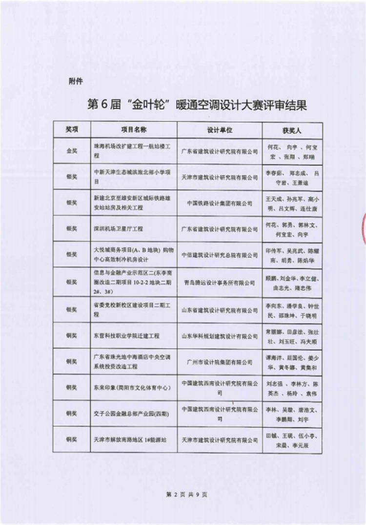 第6届“金叶轮奖”暖通空调设计大赛由国家节能环保制冷设备工程技术研究中心主办,珠海格力电器股份有限公司协办。本届大赛于2023年4月在上海正式启动;2024年4月8日在第35届国际制冷展期间进行申报项目预审结果公示;2024年5月20-21日,进行申报项目评审会议。