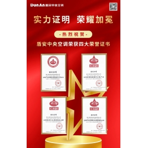 盾安中央空调被中国质量检验协会授予四大荣誉证书