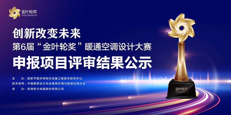 第6届“金叶轮奖”暖通空调设计大赛由国家节能环保制冷设备工程技术研究中心主办,珠海格力电器股份有限公司协办。本届大赛于2023年4月在上海正式启动;2024年4月8日在第35届国际制冷展期间进行申报项目预审结果公示;2024年5月20-21日,进行申报项目评审会议。