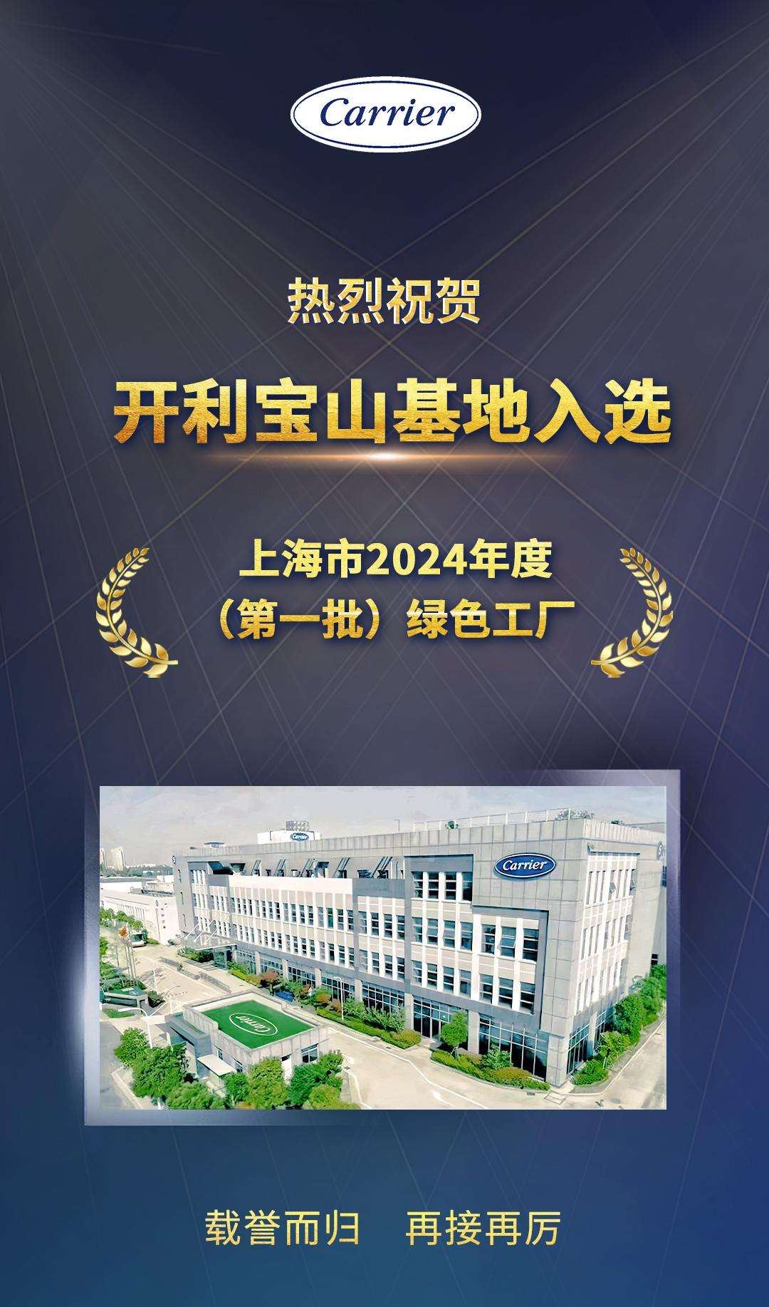 开利宝山基地荣获上海市2024年度(第一批)绿色工厂荣誉称号