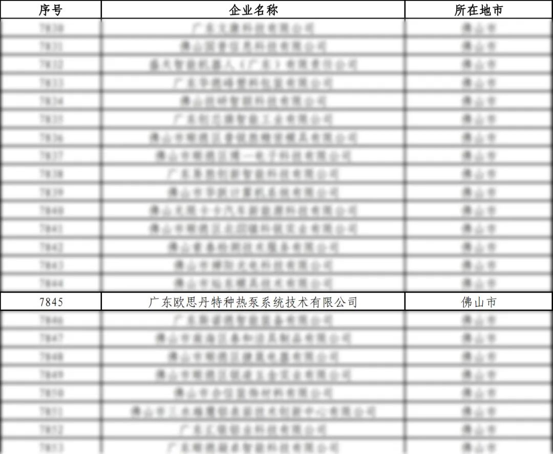 近日,广东省2024年第三批拟入库科技型中小企业名单正式公示,其中,欧思丹子公司——广东欧思丹特种热泵系统技术有限公司(以下简称“欧思丹特种热泵”)凭借卓越的科技创新能力成功入库!