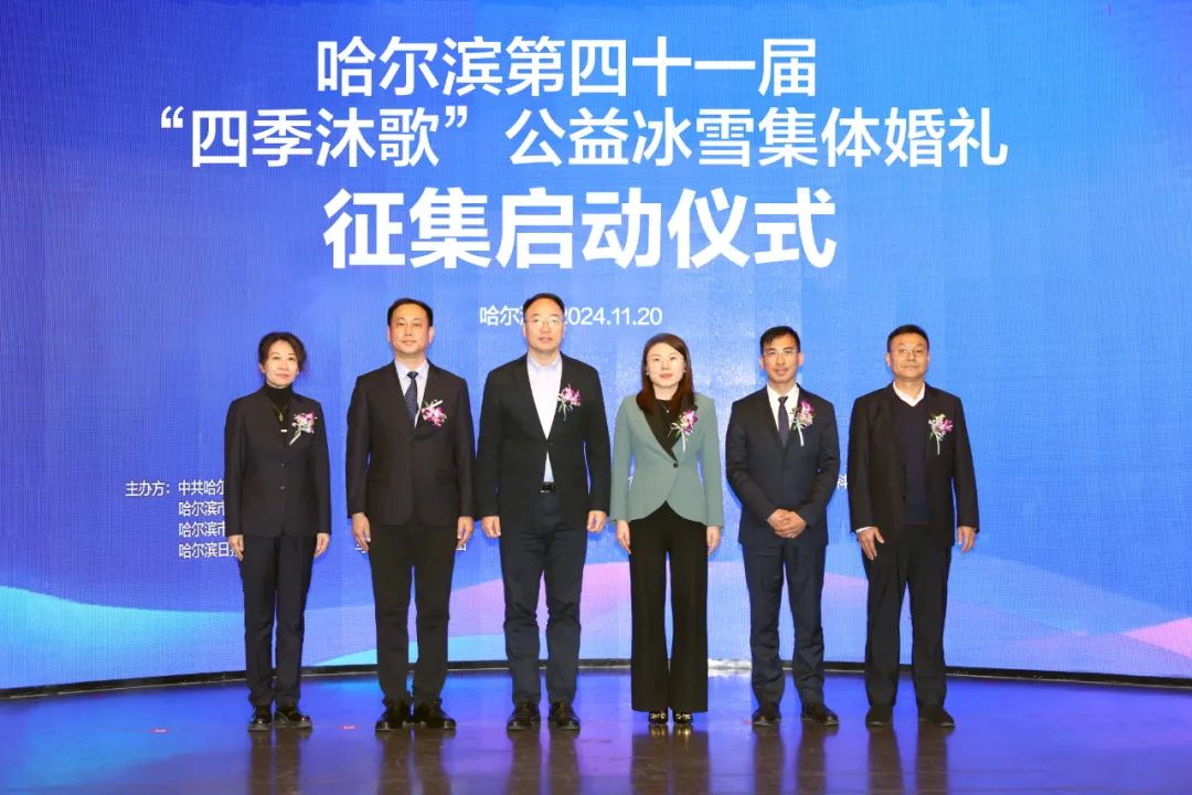 11月20日,哈尔滨第四十一届“四季沐歌”公益冰雪集体婚礼冠名签约暨新人征集启动仪式在哈尔滨隆重举行。本次活动由中共哈尔滨市委宣传部、共青团哈尔滨市委员会、哈尔滨市文化广电和旅游局、哈尔滨市民政局、哈尔滨市卫生健康委员会、哈尔滨广播电视台、哈尔滨日报社、马迭尔文旅投资集团主办,哈尔滨青年宫承办,四季沐歌集团总冠名。旨在助力哈尔滨国际冰雪节等旅游文化时尚活动开展,服务青年群体,引领婚礼文化时尚,创新婚礼文化活动品牌,提升城市文化软实力。