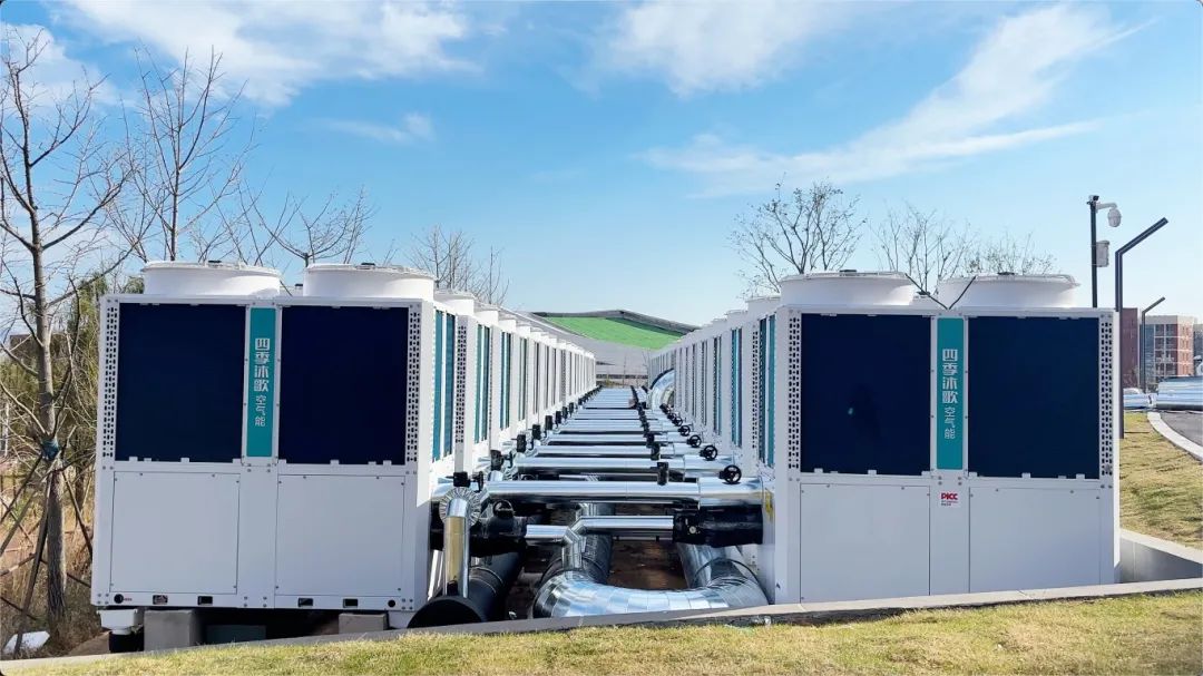 青岛大学城图书馆,作为青岛万亩大学城五大公共场馆之一,总建筑面积达81879平方米,不仅是山东省单体规模最大的图书馆,也是国内领先的公共图书馆,更是全国排名前十的高校图书馆。而文化馆总建筑面积为24900平方米,承担着国家级各类演出、大型会议、国际学术交流、文艺创作交流等多重功能。此次两大场馆的供暖与制冷系统均采用了四季沐歌的空气源热泵分布式智慧能源站解决方案,共安装了54台四季沐歌155kW超低温空气源热泵冷暖机、搭载CAS智慧控制系统,以实现冬季供暖、夏季制冷,为场馆营造出四季如春的舒适环境。在工程项目实施过程中,四季沐歌工程服务团队从方案设计、产品供应、施工安装到调试运维,提供了全方位的服务。