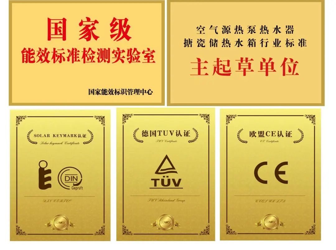 光芒新能源致力于成为全球知名企业的首选合作伙伴,产品先后通过ISO 9001、ISO 14000、国家CCC认证以及WRAS、CE、Solar Key mark、watermark、ETL等国际认证,先后荣获 “搪瓷工业十强企业”、“中国热泵行业技术创新奖”、“中国热泵行业优质供应商品牌”等荣誉,参与起草了空气能、太阳能、供暖搪瓷储能水箱、缓冲水箱等多项行业标准,获得了行业与市场的双重认可,是热水应用领域的“实力担当”。