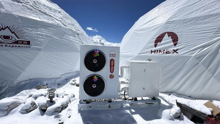自2023年起,太阳雨空气能热泵已经连续三年在海拔5200米的珠峰大本营成功运行。挑战超高海拔和超低环境温度,验证空气能热泵产品在极端恶劣环境下的运行稳定性及性能表现,是中国热泵产业发展历程中具有标杆意义的事情。