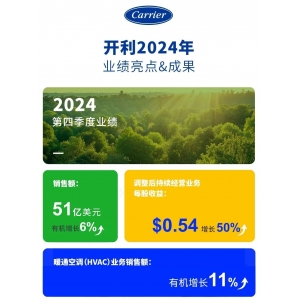 开利全球公布2024年业绩及2025年新展望