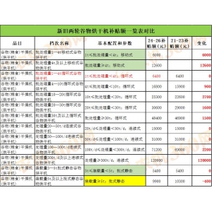 8月6日,农业农村部农业机械化总站对《2024—2026年全国通用类农业机械中央财政资金最高补贴额一览表(公示稿)》进行了公示。谷物烘干机补贴额对比总体来看,相